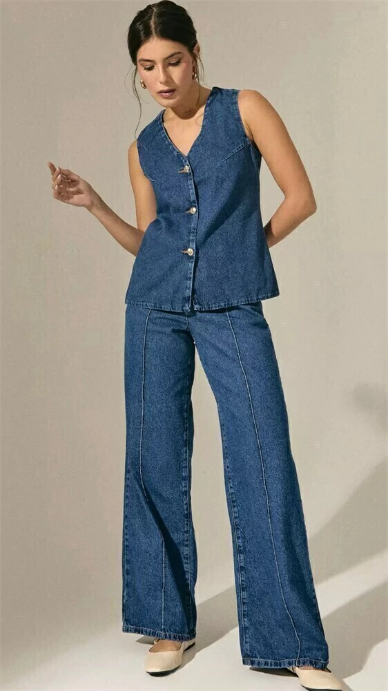 Disponível nas cores lavagem escura e off-white, esta peça é perfeita para quem busca estilo com praticidade.
