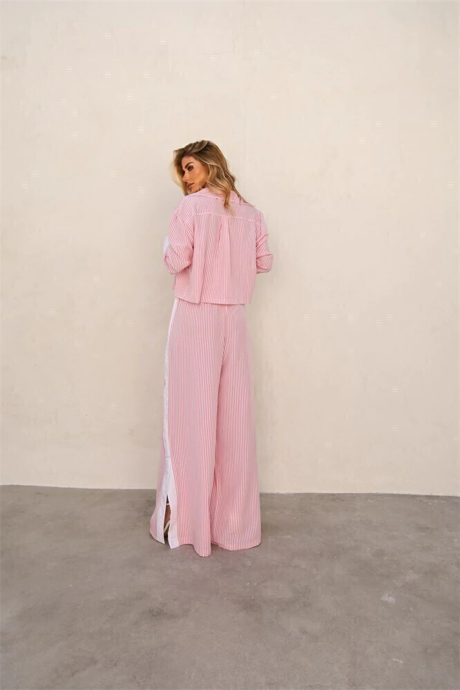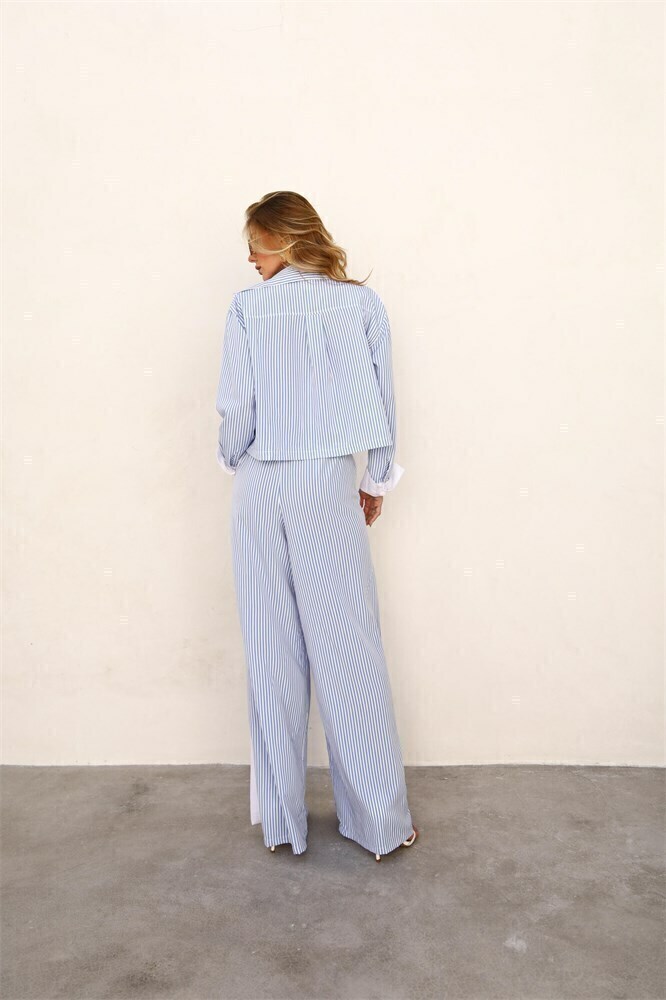 Este conjunto sofisticado e confortável é a escolha ideal para quem busca praticidade sem abrir mão do estilo. O Trijunto Fran é composto por uma camisa com manga longa e abotoamento frontal, top e calça de cintura alta com corte amplo, que garante um look elegante e descontraído ao mesmo tempo.